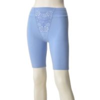 肌側が綿混素材の裏綿サテンネットを身生地に使用した、ショートタイプのガードルです。裏綿サテンネットの表側は、アウターの滑りが良く滑らかなタッチの素材感。