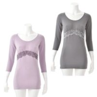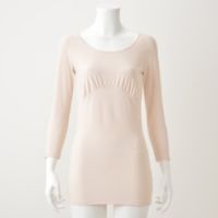 適度に伸縮性があり、肌あたりの良い滑らかな素材で仕立てた8分袖のインナーです。身生地には綿混モダールベア天竺素材を使用。胸下の切替えとギャザーが、すっきりとしたバストラインを作っています。バスト下のレース使いが、女性らしさを演出。ラグラン仕様の袖には、アウターに響きにくいカッティングを施しました。インゴムを配した広めのラウンドネックが、デコルテに優しくフィット。肩先から腰周りまで覆う丈感で、あたたかく着用いただけます。