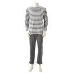 ボーダーのトップスと無地のパンツをセットにした、メンズ用のルームウェアです。お手持ちのアイテムと組合せて、上下別でも着用しやすいデザイン。