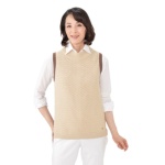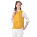 サイドに入れた深めのスリットがアクセントになったニットジレです。ハイゲージながら、ふっくらとしたウール混の糸を使用。