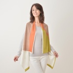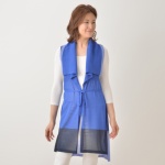 大きなストール風のニットジレです。上下逆さに着用でき、柄の色合いや衿のボリュームの違いが楽しめるデザイン。