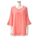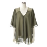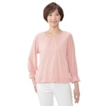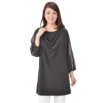 胸元のドレープがエレガントな、ジャージー素材のチュニックです。袖はシフォン素材を使用し、軽やかで上品な透け感を演出。