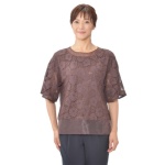 フェミニンな柄のレース生地が素敵なプルオーバー。衿ぐりと裾で切り替えたオーガンジーの、控えめな透け感が大人っぽく軽やかです。