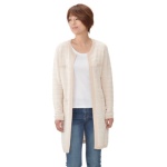 ミックスヤーンを使用した、ロングニットジャケットです。ストレート糸とカールのかかったブークレーの糸を2本取りして、ざっくりと編み上げました。