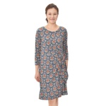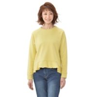 アンティーク調のプリントを施した、エレガントな雰囲気のプルオーバーです。ウエスト部分にはアシンメトリーのタックを入れ、スリムな印象に。