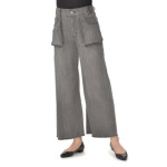 大き目のポケットが特徴のワイドデニムパンツ。ストレッチデニム素材と脇ゴム仕様で、楽に着用いただけます。