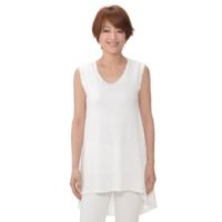 布帛素材で仕立てた、フェミニンなノースリーブのチュニックです。裾はアシンメトリーにカットした、スタイリッシュなデザイン。