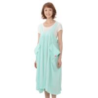 ゆったりしたシルエットのジャンパースカートです。柔らかいコットン100%の素材で、涼しげな雰囲気に仕上げました。