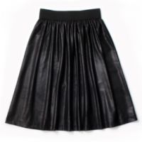 ポンチとフェイクレザーで切替えたスカートです。身生地には伸縮性のあるカットソーポンチと、艶感のあるフェイクレザーを使用。