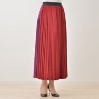 繊細なプリーツがエレガントな、ロング丈のスカートです。前と後ろで色差をつけた、バイカラーのデザインが印象的。