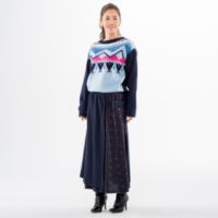 ドット柄が印象的なジャガードニットスカートです。ストレートヤーンをグランド部分に、フェザーヤーンとストレートヤーンのMIX糸をドットの柄部分に使用。