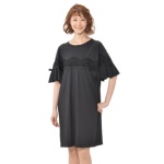 裾をドット柄のチュールレースで切り替えた、お洒落なワイドパンツをご紹介します。生地にはストレッチ性に優れた、しなやかで程よい肉感のあるポンチ素材を使用。
