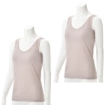 パッドが取り外し可能な、カップ付のタンクトップです。生地は丸編みなので脇に縫い目がなく、優しい肌あたり。