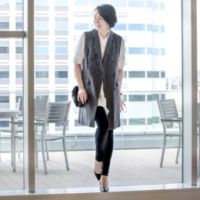 コーディネートの幅が広がる、シャツとビスチェのセットアップをご紹介します。シンプルなシャツと、裾にレースをあしらったビスチェの組合せ。