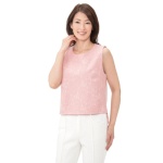 前身頃のレースがエレガントな装いを演出する、レースコンビベストをご紹介します。前身頃は繊細なレースとポンチのボンディング素材を使用し、後ろ身頃はポンチで切替えたデザイン。