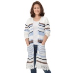 Soobinieエレガントなマルチボーダーロングカーディガン