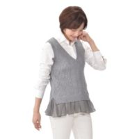 裾にシフォンフリルをあしらった、可愛らしいニットベストをご紹介します。柔らかい風合いのニット地は、しっとりしていて着心地も快適。