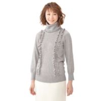 前身頃にフリルをあしらった、フェミニンなニットプルオーバーです。シンプルなタートルネックのシルエットで、どんなアイテムとも好相性。