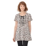 襟のリボンが愛らしい、花柄プリントのチュニックです。身生地には、さらっとした優しい肌触りのスムース素材を使用。