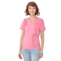 身頃に施したフリルが華やかな半袖Tシャツをご紹介。生地には天竺素材を使用し、シンプルに仕上げました。