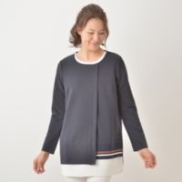 前身頃裾をリブで切替えた、アシンメトリーデザインのチュニックです。絶妙な切替位置とテクニックで、左右のバランスをとってデザイン。