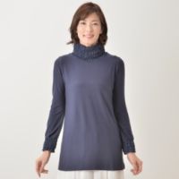 吸湿発熱素材を使ったシャーリングプルオーバー。贅沢にシャーリングを施し、インナーに着ていただくだけで、コーディネートが華やかになる便利なアイテムです。