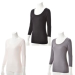 細番手の糸を使用した、なめらかな肌触りの7分袖シャツです。肩継、袖付け、袖地縫いの縫い目を倒して縫い付けることで、ゴロつき感が少なく、肌あたりや縫い目のチクチク感を軽減しました。