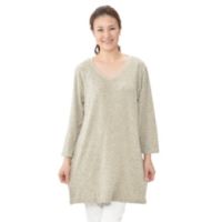 シンプルで可愛らしいロングチュニックをご紹介。綺麗に開いたVネックがデコルテを引き立て、女性らしい着こなしを演出します。