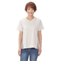 綺麗な配色でオシャレに装える、半袖Tシャツとカーディガンのアンサンブルです。TシャツはシンプルなVネック。