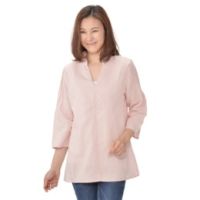 綿麻素材で仕立てた、綺麗なシルエットのチュニックです。カラー部分と程よい開き具合のVネックが、お顔周りをすっきりと演出。