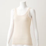 パッドが取り外し可能な、カップ付のタンクトップです。生地は丸編みなので脇に縫い目がなく、優しい肌あたり。