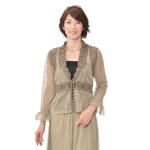 チュールネットに手の込んだかぎ針編みを巧みに組合せた、ライトなジャケットです。チュールネット部分は2枚重ねにすることで、控えめで上品な透け感に仕上げました。