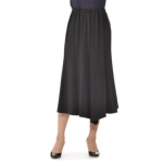 バックスタイルにこだわった、お洒落でインパクトのあるデザインスカート。前は伸縮性のあるポンチ素材を、後ろは微光沢感のある軽い布帛を使用し、素材感によるコントラストでモードな印象に。