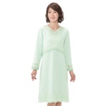 立体感のあるレースを巧みに組合せた、ラグジュアリーなワンピースです。本体生地は、程よい厚みとソフトな風合いをもつ、着心地のよいジャージー素材を使用。
