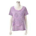 フェミニンな柄のレース生地が素敵なプルオーバー。衿ぐりと裾で切り替えたオーガンジーの、控えめな透け感が大人っぽく軽やかです。