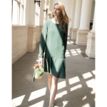 リラックス感のあるカットソー素材で仕立てた、チュニック丈のワンピースをご紹介します。ヘンリーネックの変形したデザインが、ネックラインをすっきりと演出。