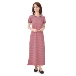 ボーダーとストライプをミックスした、大人カジュアルなワンピースです。着心地のラクなコットン100%のカットソー生地を使用。