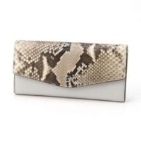 ソフトレザーにパイソンを合わせた、高級感のあるロングウォレットです。ソフトレザーにはとても柔らかく、シボ感のあるシュリンクレザーを使用。