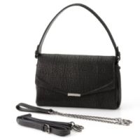 クロコダイルの型押しを施した牛革と、柔らかなしぼ感のある牛革を使用した上品なバッグです。全体的に丸みのあるデザイン。