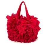 全面をフワフワのスカラップフリルで覆った、華やかなトートバッグをご紹介します。持ち手の下には、キラキラのパーツが付いたリボンをあしらってフェミニンなアクセントをプラス。