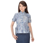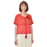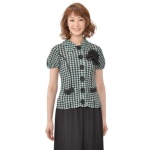 柔らかなシフォン素材に、千鳥柄のプリントをのせたデザインの半袖ジャケットです。タックを取ったお袖で可愛らしく。