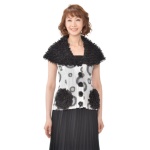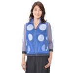 涼やかなプリーツとチュールを組合せた、遊び心たっぷりのジャケットです。身頃にはプリーツで作ったドット柄をパッチワークし、さらにチュールを重ねて2枚仕立ての作りに。