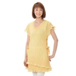 プリーツを駆使して作り上げたケーブル柄が目を引く、フェミニンなチュニック。両脇をくり抜いたデザインが、ウエストをほっそりスマートに見せてくれます。