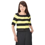 ボーダー柄状に、生地をパッチワークして仕上げたジャケットです。やや短めの着丈で、ボトムの選択肢が広がるのがポイント。