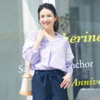 鹿の子素材のポロシャツです。襟とポケット部分にはレースを配して、大人エレガントな雰囲気に仕上げました。
