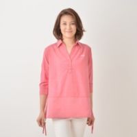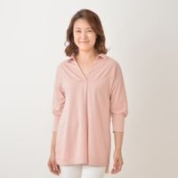 伸縮性のあるカットソー素材で仕立てた、楽な着心地のスキッパーシャツです。UVケアーの機能素材で、気になる日差しを軽減。