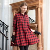 生地をたっぷりと使用し、ふんわりとしたフレアーシルエットに仕上げたシャツチュニックです。コットン100%の表微起毛の、ブロックチェック生地を使用。