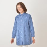 華やかなリバティプリントの魅力を活かした、シンプルなシャツチュニック。重ね着も楽しめる、ゆったりとリラックス感のあるシルエットです。
