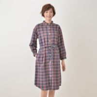薄く起毛をかけた、柔らかく温かみのある風合いが魅力。綿100%のビエラ素材で仕立てた、シャツワンピースです。