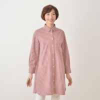 少し抑えたカラーのギンガムチェックがオシャレな、ロングシャツをご紹介。様々なコーディネートに合わせやすい、ベーシックなデザインです。